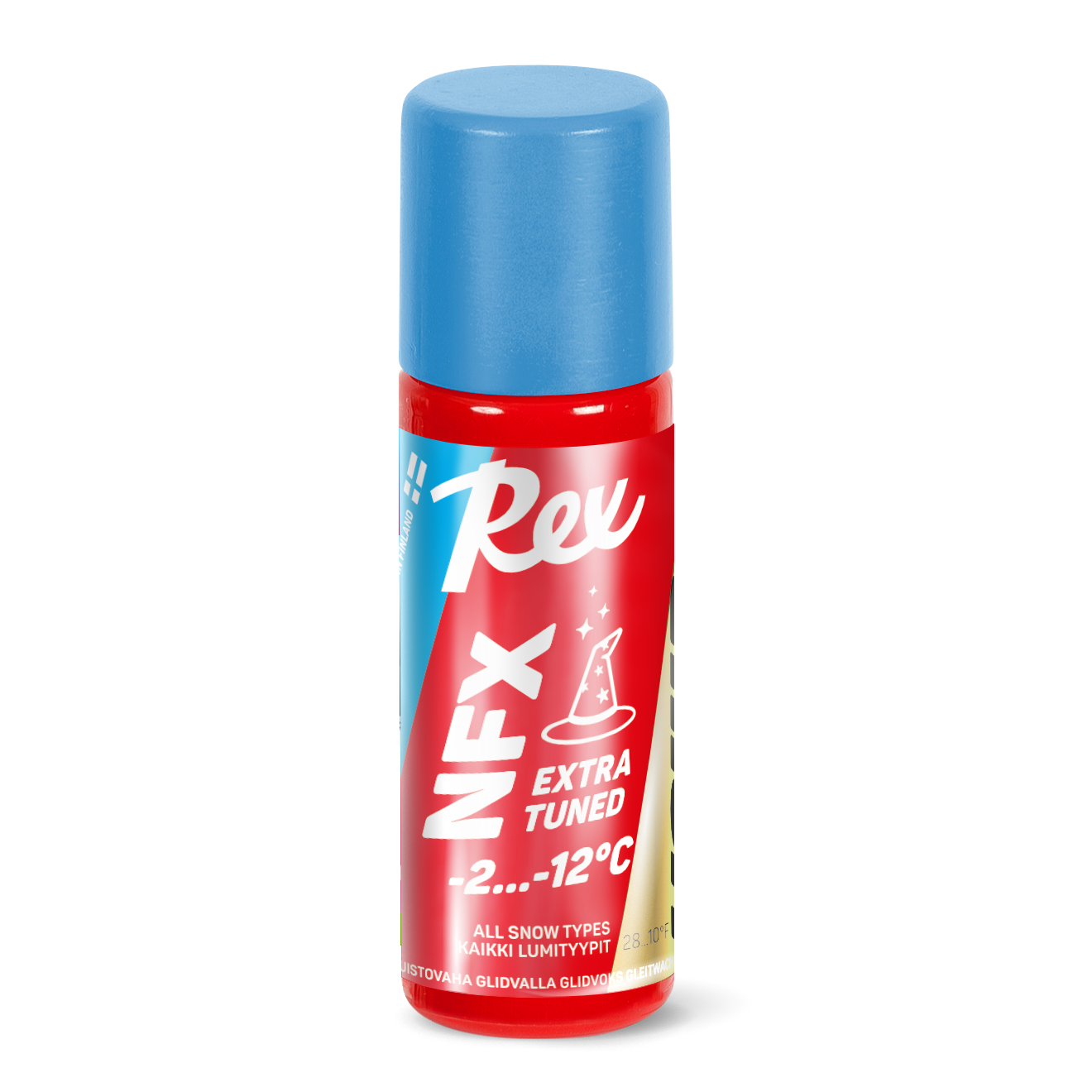 Rex NFX Blue Liquid is a premium liquid glide wax based on the trusted NFX21 powder formula, designed for medium temperature snow with lower humidity levels. This fast-drying liquid creates a slick, moisture-repellent layer that reduces friction and maximizes glide. Ideal for quick application before races or daily skiing, it delivers smooth, reliable speed without the need for ironing.